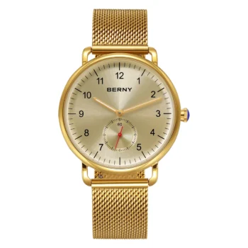 Gold Men’s Quartz Watch Modern Classic Easy Read with Stainless Steel Strap