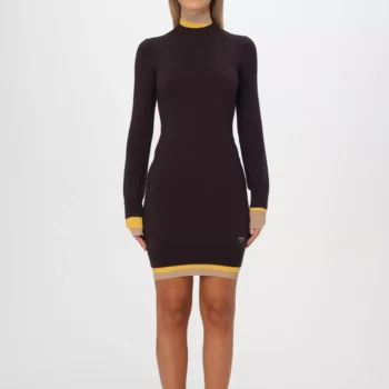 Fendi Wool Mini Dress with Ribbed Detail and Iconic Monogram