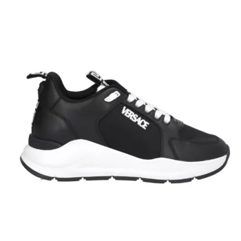 Versace Black and White Calf Leather Sneakers with Medusa Logo