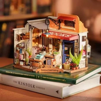 Miniature Bookstore DIY Kit with LED Lights – Craft Gift for Kids and Adults