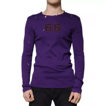 Dolce & Gabbana Purple Round Neck Cotton Pullover Sweater
