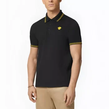 Versace Cotton Polo Shirt with Logo Patch and Ribbed Collar