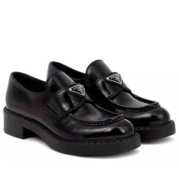 Prada Calfskin Loafers with Patent Effect & Block Heel