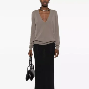 Rick Owens Cashmere Sweater Monochrome V-neck, Ribbed Hem & Cuffs
