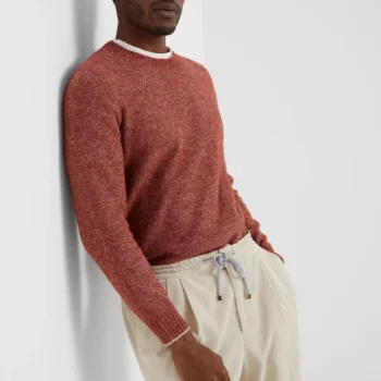 Brunello Cucinelli Men’s Mélange Ribbed Crew Neck Sweater
