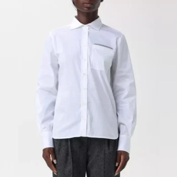 Brunello Cucinelli Cotton Shirt with Jewel Detail and Monochrome Pattern
