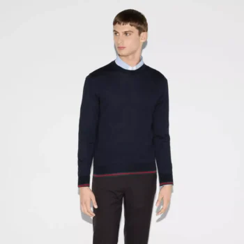 Gucci Wool Sweater with Iconic Multicolored Ribbed Bands