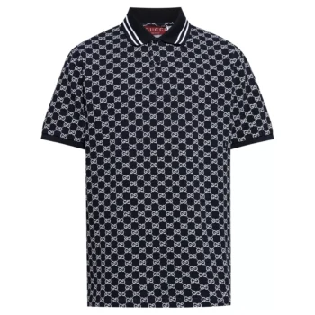 Gucci GG Wool Jacquard Polo Top with Ribbed Collar