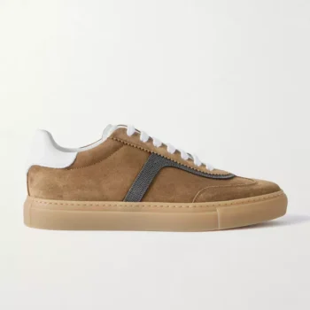 Brunello Cucinelli Leather Sneakers with Suede and Shiny Bead Detail