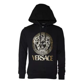 Versace Black Cotton Pullover Sweatshirt with Hoodie and Logo Details
