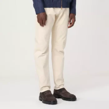 Brunello Cucinelli Cotton Pants with Worn Effect and Iconic Leather Patch