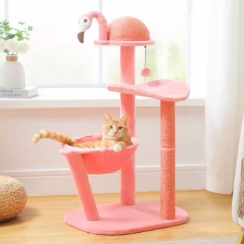 Flamingo Pink Cat Tree Tower with Sisal Scratching Posts & Hammock
