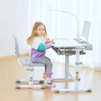 Height Adjustable Kids Study Desk and Chair Set with Tilt Desktop & LED Light