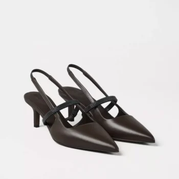 Brunello Cucinelli Leather Pumps with Shiny Jewel Appliqué