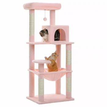 Multi-Level Cat Tree Tower with Large Hammock, Cozy Condo & Scratching Posts – Pink