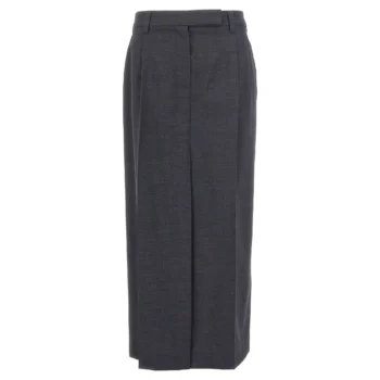 Brunello Cucinelli Virgin Wool Midi Skirt with Front Slit and Mélange Pattern