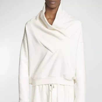Saint Laurent Cotton Sweatshirt with Shawl Collar and Monochrome Pattern