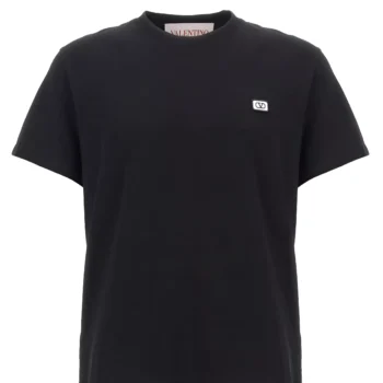 Valentino Cotton T-Shirt with Logo Patch and Monochrome Design