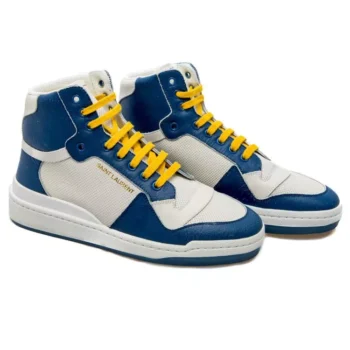 Saint Laurent Mid-Top Blue Calf Leather Sneakers