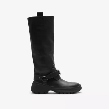 Burberry Leather Stomp Boots with Equestrian Detailing