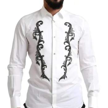 Dolce & Gabbana GOLD Slim Fit White Tuxedo Smoking Cotton Shirt