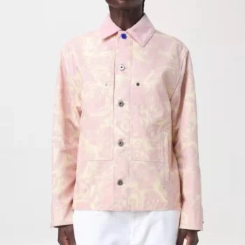 Burberry Cotton Denim Jacket with Velvet Collar and Floral Pattern