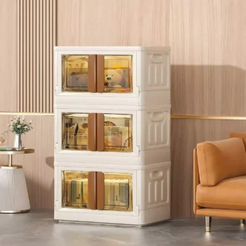 8.4 Gallon Collapsible Storage Bins with Lids – Stackable Storage Bins with Doors and Wheels, 3 Pack