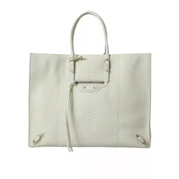BALENCIAGA Python Leather Papier Tote Bag – White & Lemon Yellow