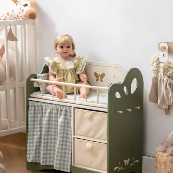 Wooden Baby Doll Bed with Bedding and Storage for 18-Inch Dolls – Green