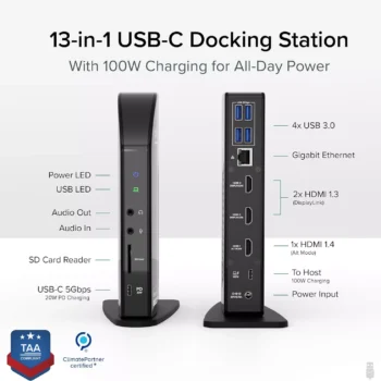 13-in-1 USB-C Triple Monitor Docking Station with 100W Laptop Charging