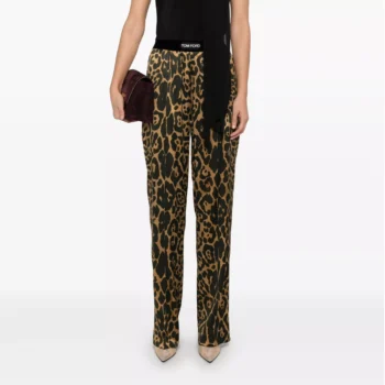 Tom Ford Silk Pants with Animal Print and Elastic Waistband