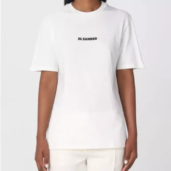 Jil Sander White Cotton T-Shirt with Iconic Monogram