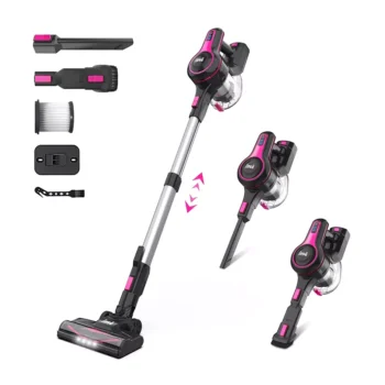 20Kpa Cordless Stick Vacuum Cleaner for Hard Floor, Carpet & Pet Hair, Rose Red
