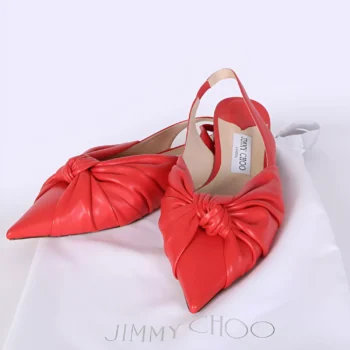 Jimmy Choo Red Chilli Annabell Leather Pointed Toe Flat Shoes