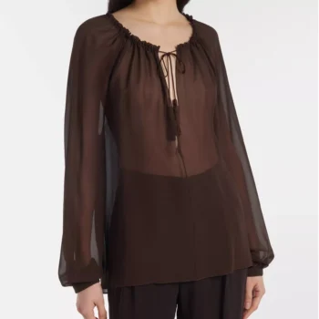 Tom Ford Silk Georgette Blouse with Tasseled Drawstring Neckline
