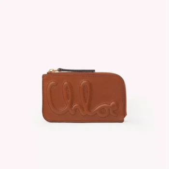 Chloé Leather Card Holder with Monogram and Zip Compartment
