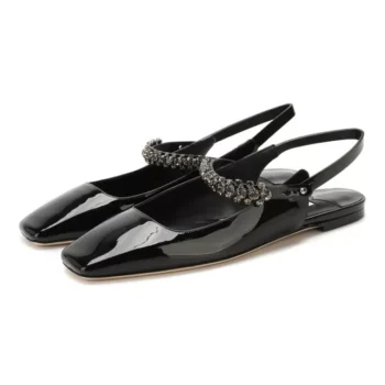 Jimmy Choo Mahdis Black/Smoke Patent Flat Shoes with Crystal Strap