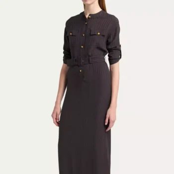 Tom Ford Long Dress with Adjustable Belt and Vertical Pattern