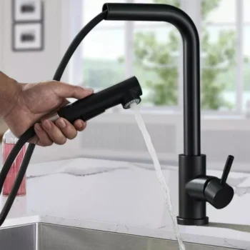 Black 360° Rotation Stream Sprayer Nozzle Stainless Steel Kitchen Sink Faucet