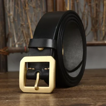 Men’s Genuine Cowhide Leather Belt with Solid Brass Buckle – 1.5 Inch Wide