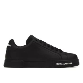 Dolce & Gabbana Leather Sneakers with Monogram Heel and Lace-Up Closure