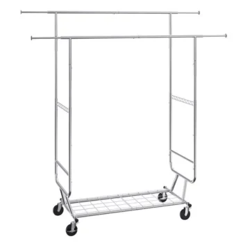 Adjustable Double Hanging Rod Garment Rack with Storage Shelf