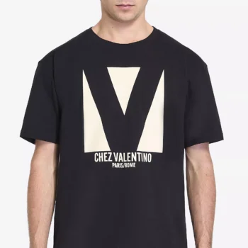 Valentino Cotton Maxi Print T-Shirt with Logo and Monochrome Design