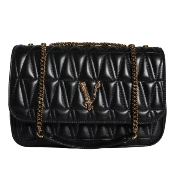 Versace Black Crossbody Bag with Adjustable Strap and Multicolor Lining