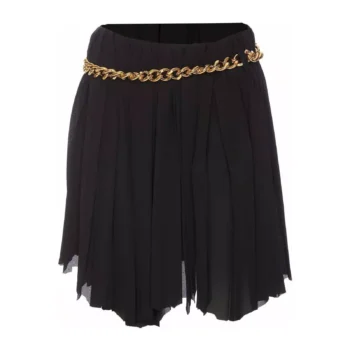 Balenciaga Asymmetrical Pleated Mini Skirt with Gold Chain Detail