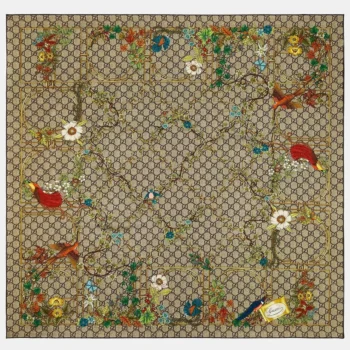 Gucci GG Logo Silk Scarf with Embroidered Monogram Border