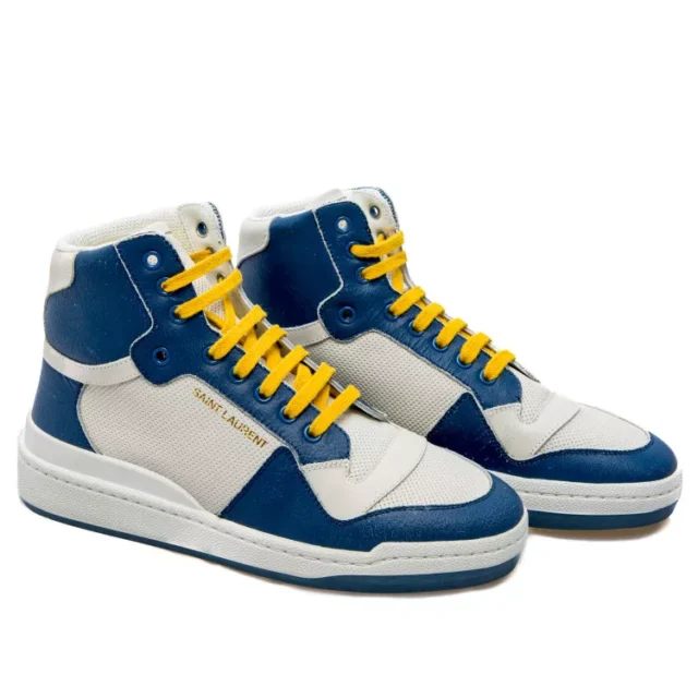 These mid-top sneakers are more than just footwear—they’re a testament to timeless style and quality. Featuring a stunning blue hue, a classic lace-up design, and signature Saint Laurent logo prints, these shoes are crafted for individuals who want to express themselves through their wardrobe. The round toe and supportive structure make them comfortable for all-day wear, while the premium materials ensure lasting durability.