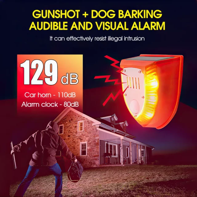Looking for an effective, eco-friendly way to protect your home, garden, or farm? This Solar-Powered Motion Sensor Alarm is your solution. Whether you need to secure a yard, driveway, or warehouse, this alarm provides a reliable and cost-effective security solution. The combination of the flashing light and 129-decibel sound ensures that anyone within range is immediately alerted, helping to deter any intruders or unwanted animals before they can cause harm.