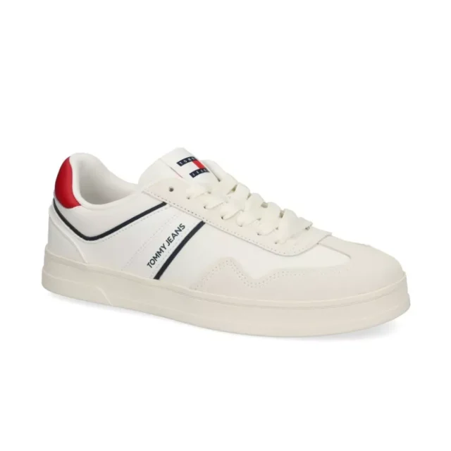 Elevate your footwear game with the impeccable design of Tommy Hilfiger Men’s White Leather Sneakers. Crafted for the modern man, these sneakers combine sleek aesthetics with premium comfort, making them an essential addition to your fall and winter wardrobe. Whether you’re heading out for a casual stroll or meeting friends, these versatile sneakers keep you looking sharp and feeling great all day long.