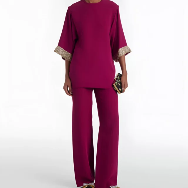 Step out in style with the Valentino Fuchsia Palazzo Pants, the perfect blend of elegance and personality. Whether you’re attending a casual brunch, making a bold statement at the office, or turning heads at a formal event, these pants are your go-to choice for contemporary sophistication. Shop the Fuchsia Palazzo Pants today and infuse your wardrobe with vibrant charm and modern elegance.